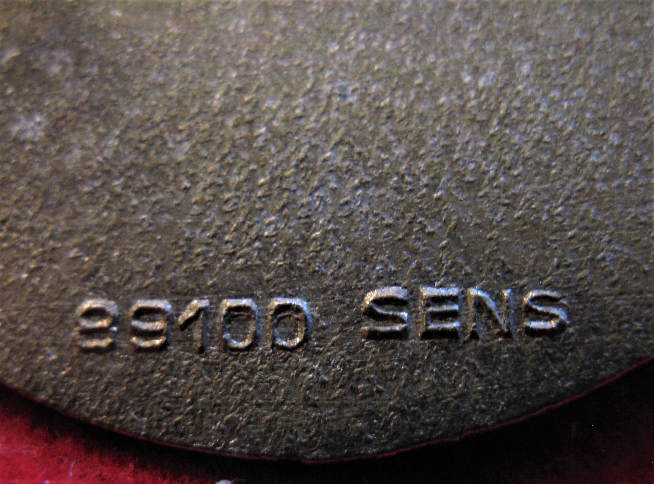 This is a spectacular badge, related to the French Army. Made of a heavy white metal eagle and enameled cannon motif. Has an enameled Shield over crossed swords all surrounded with a floral wreath. All this mounted on an enameled roundel with "Studere" and a small "bie" just below the barrel of the cannon. Has a straight pin style attachment. It is hallmarked "Y.DELSARI". View scans for details. Don't know much more about it though???