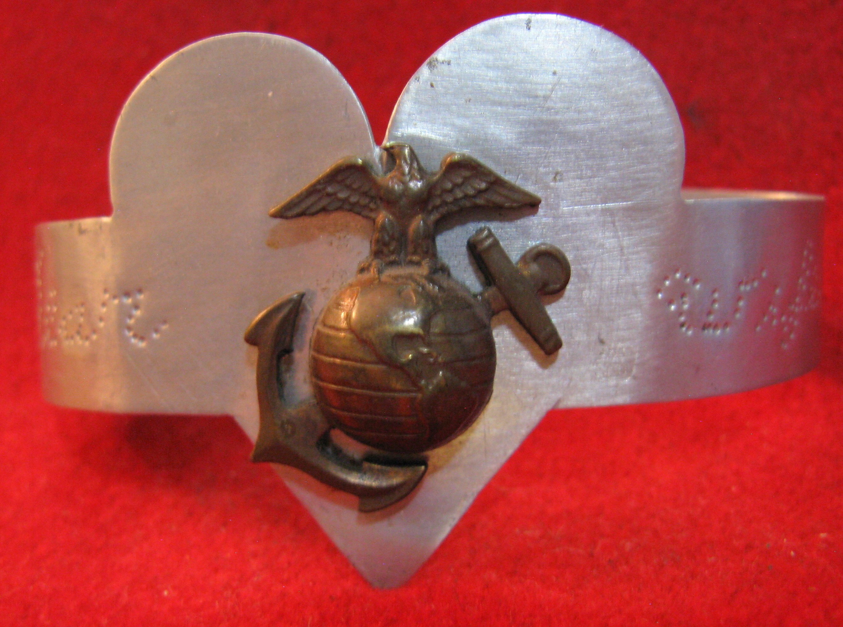 hallmarked "Krew G1" with a silver mark as well $40.00 | ![]() USMC early (WWI?) collar badge type