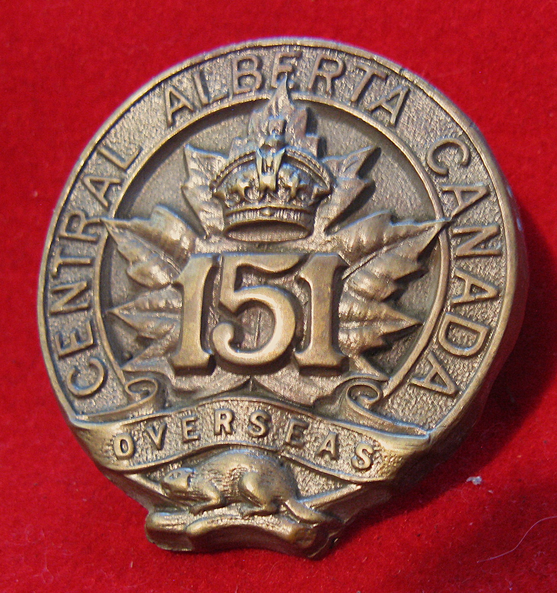 Set of 2 pcs. Made of brass with all original vertical lugs in good order. $49.00 | ![]() WW1 CEF 151st Batallion Cap Badge