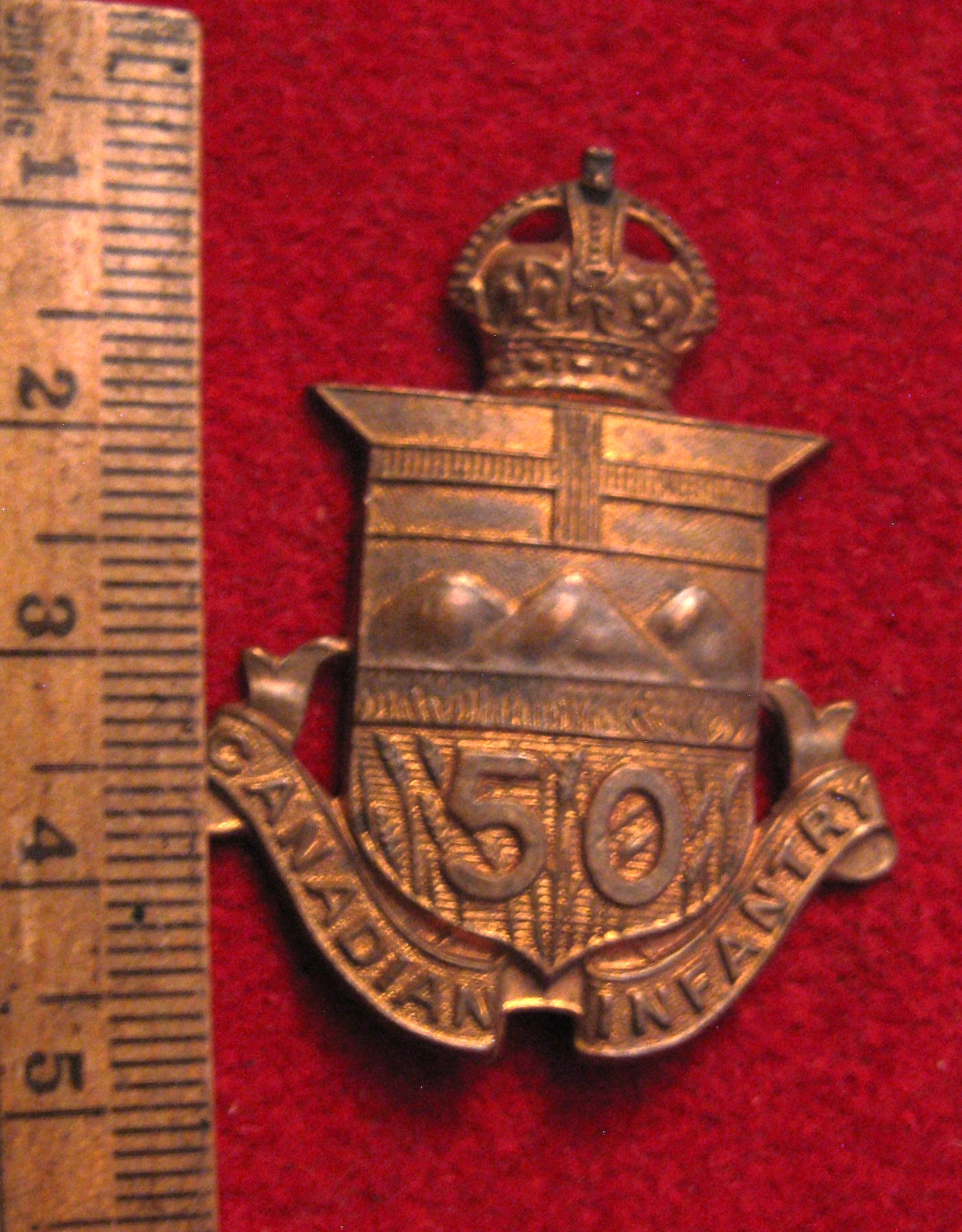 The 50th was also a Calgary battalion. I have been told this style of badge was used in Canada and not overseas. The CEF battalion was raised in 1915 and served in France and Belgium with the 10th Canadian Infantry brigade.