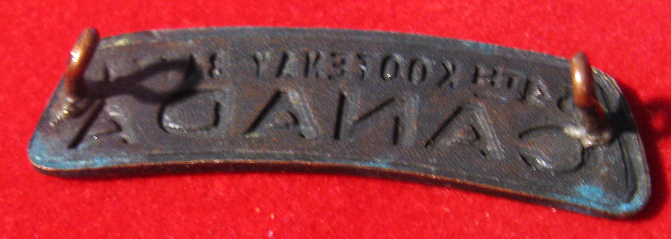 You are viewing a CEF WWI era Canadian 54th Battalion copper shoulder title badge. Made of copper, with lug type fasteners intact, and in good order, complete with no discoloration, chipping or damage to the design features.