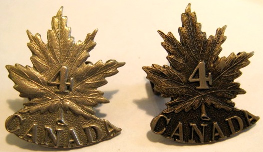 You are viewing a rare collar set for the WWI 4th CEF batallion. All original lugs are intact andin good order.