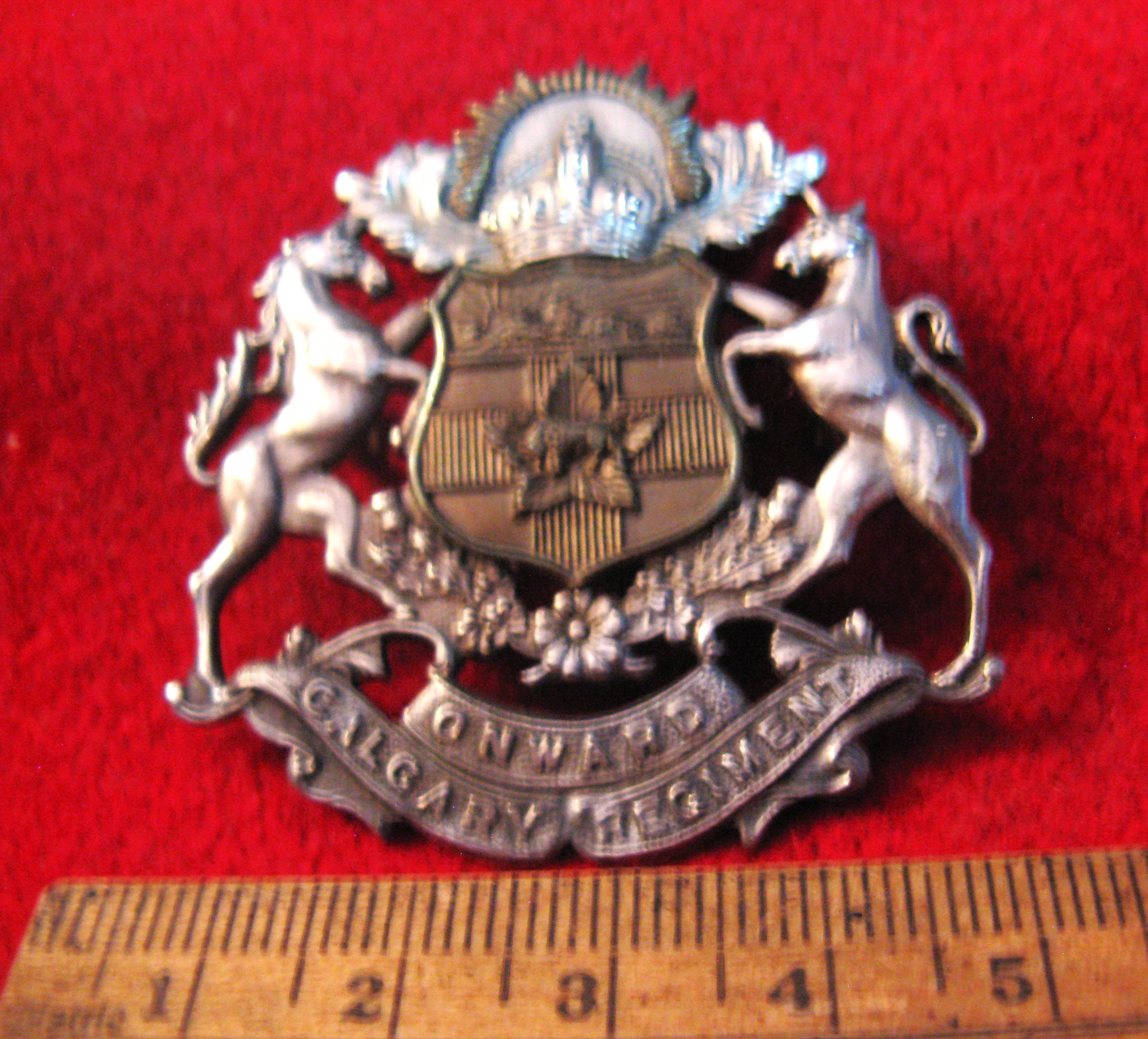 You are viewing an excellent specimen of the WW2 Kings Crown Kings Own Calgary Regiment Cap Badge. Comes with original lugs as shown.The Calgary Regiment gained fame from being part of the allied force which attacked th French coastal town of Dieppe in 1942. The famous picture of a derilect tank on the beach is a testament to the loss and sufferng sustained by Canadian and British forces during that raid. Later in the war they were able to get back at the enemy, however. All lugs intact on this hard to find bi-metal badge.