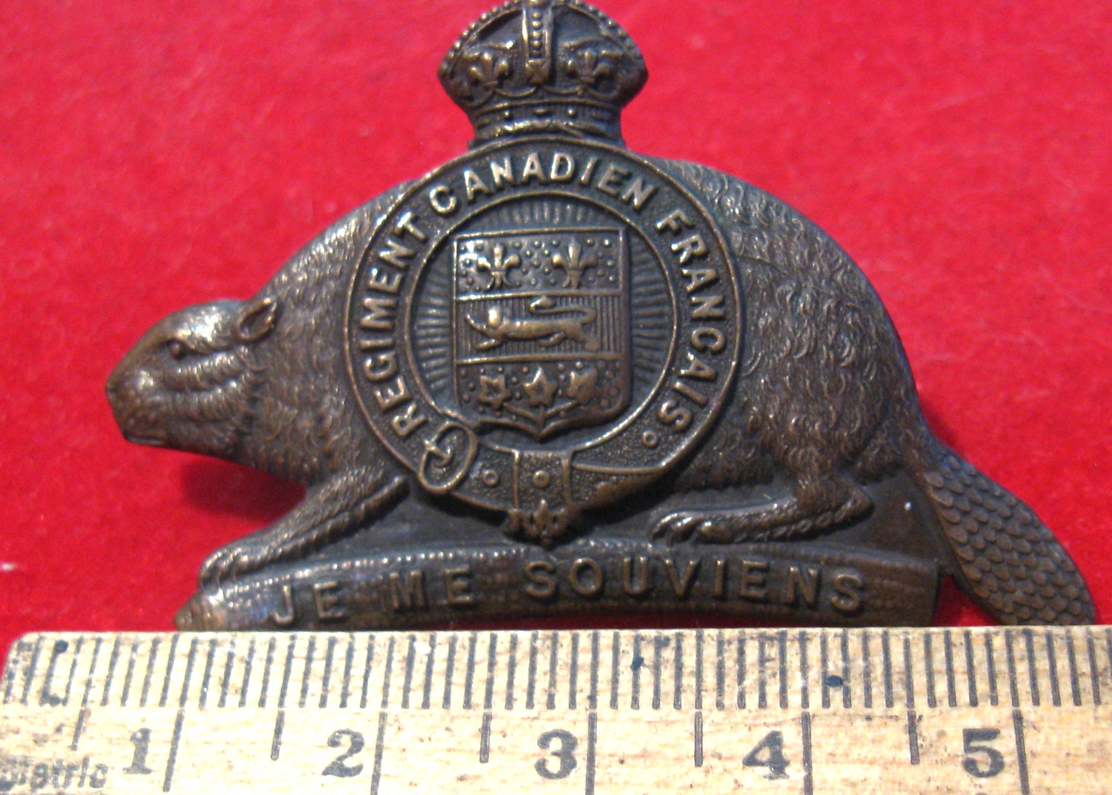 You are viewing a CEF 22nd Battalion WWI rare Cap badge. This badge was used by the famous French Canadian Battalion known throughout WW1 & WW2 as the "Vandoos". This beautiful example has both original lugs intact and in good usable order. It is also nicely hallmarked with "Caron et Freres - Montreal 1914. (view scans for details). A clean copper o/r cap badge with very nice patina giving evidence to its age. A rare beauty for any collector of Canadian CEF badges.
