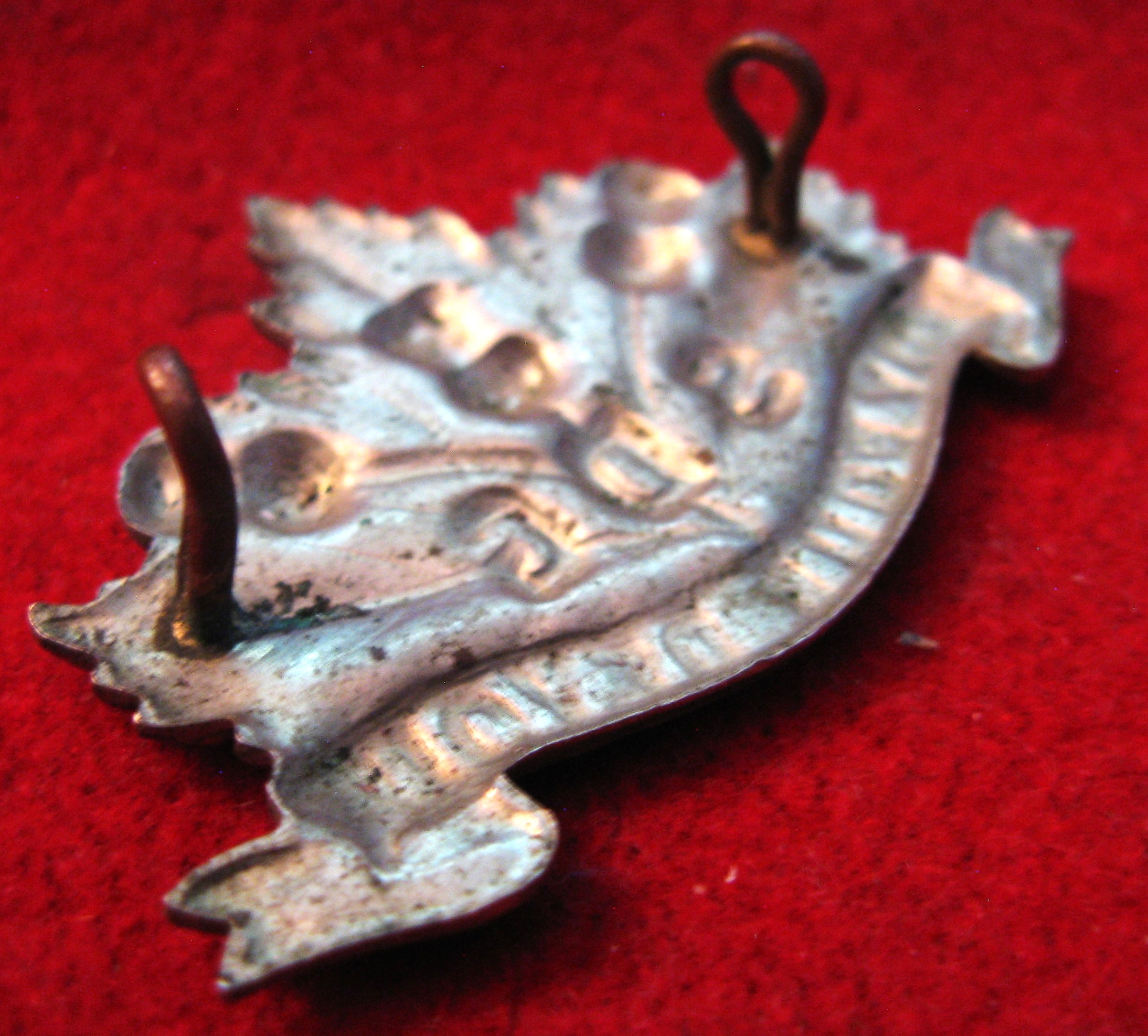 Above are the scans for a large format Stormont Dundas & Glengarry Highland Collar badge. Made of white metal with both original lugs intact and in good order.