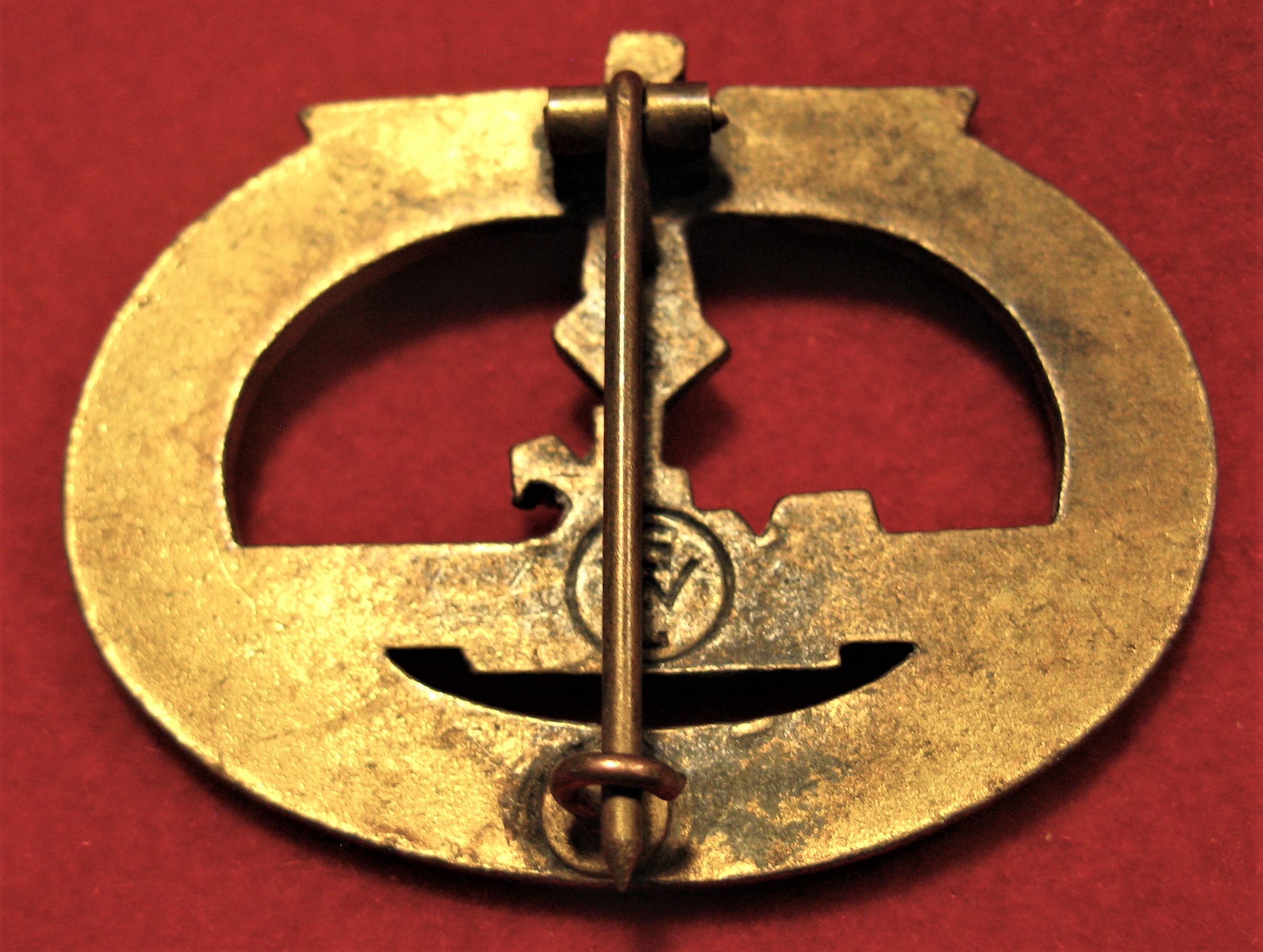 A very fine example of a German WWII U boat brest badge. Complete with straight pin, real nice patina on this heavy brass specimen.. Excellent condition. No more need be said. Enjoy the scans.