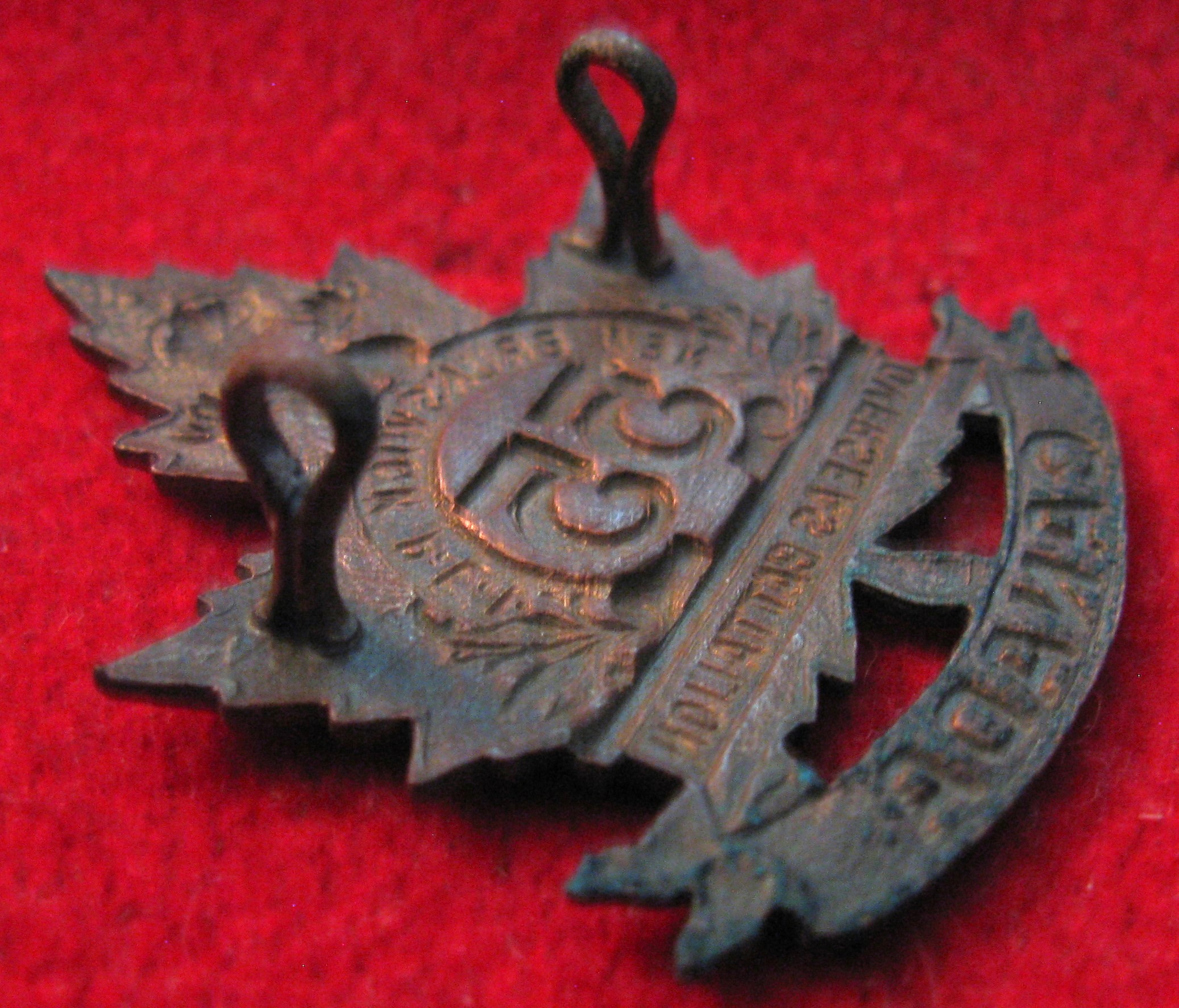 Above you may view the scans for a WWI 55th Battalion cap badge. This beautiful example is complete with its original lug style attachments. A solid copper badge with both original welded lugs. The badge still bears its distinctive design features clear and well defined.