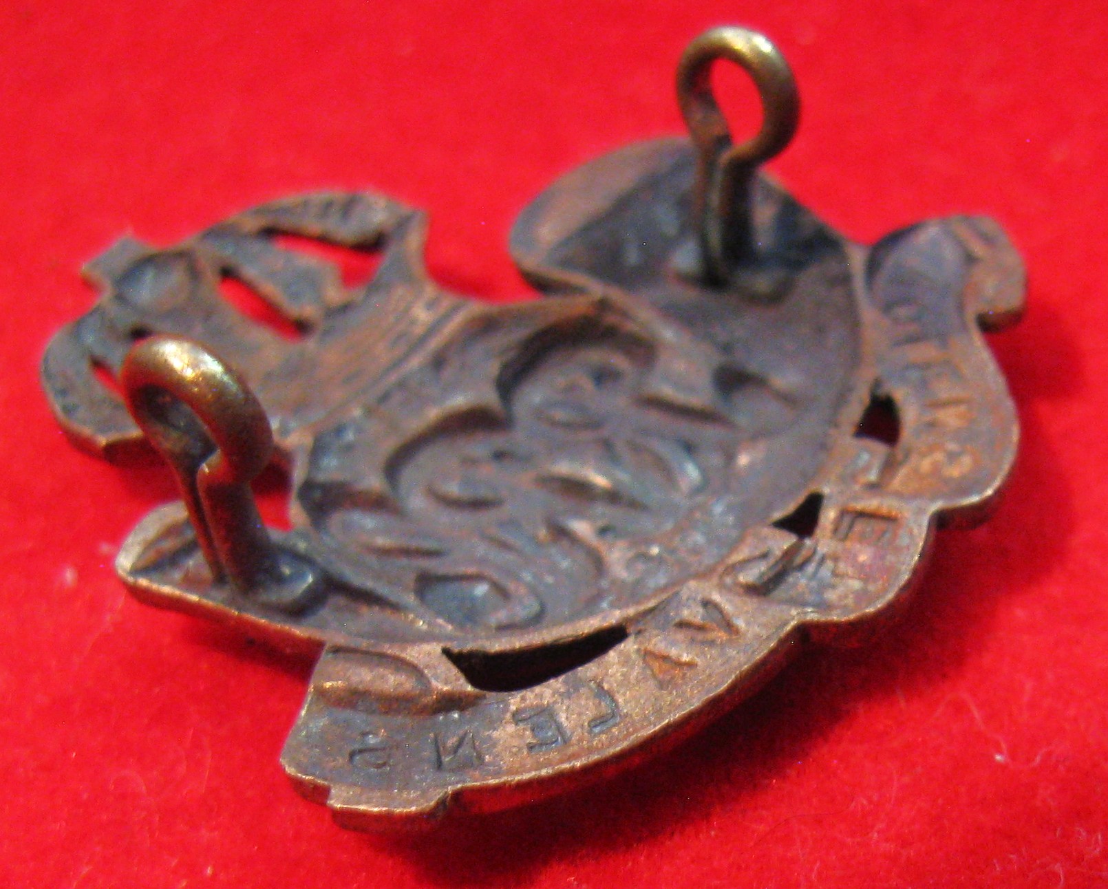 Above are the scans for this copper version of a Royal Rifles of Canada collar badge. it is a welded stem lug version with original lugs in a horizontal position, still in good condition. Somewhat hard to fine due to its regimental history.