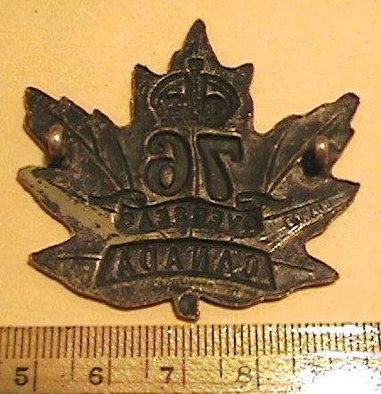 BelowYou may view the scans for a WW176th Batallion cap badge. Formed in 1915. This battalion was raised in Southern Ontario, with headquarters in Niagra. Sailed for England inApril of1916 and was absorbed into the 36th Infantry Battalion.to become the 3rd ReserveBattalion. This beautiful example is complete with both lugs. A solid brasso/r badge with very nice patina giving evidence to its age. A beauty for any collector of Canadian CEF badges. Guaranteed 100% genuine.Forcredit cardpayment over the phone: 1-403-262-2397 (1:00pm to 6:00pm Monday through Saturday - mountain time!) or by email at creidm@gmail.com .We also accept Paypal; click the link below. Notethat you must assume responsibility for loss in shipping if you declineour tracking / insurance offer. I will happily combine items to save shipping costsif you purchase other items as well... Please keep in mind that on all our products we accept prepaid authorized returns within 14 days of shipping, for full product credit, if you are not satisfied.