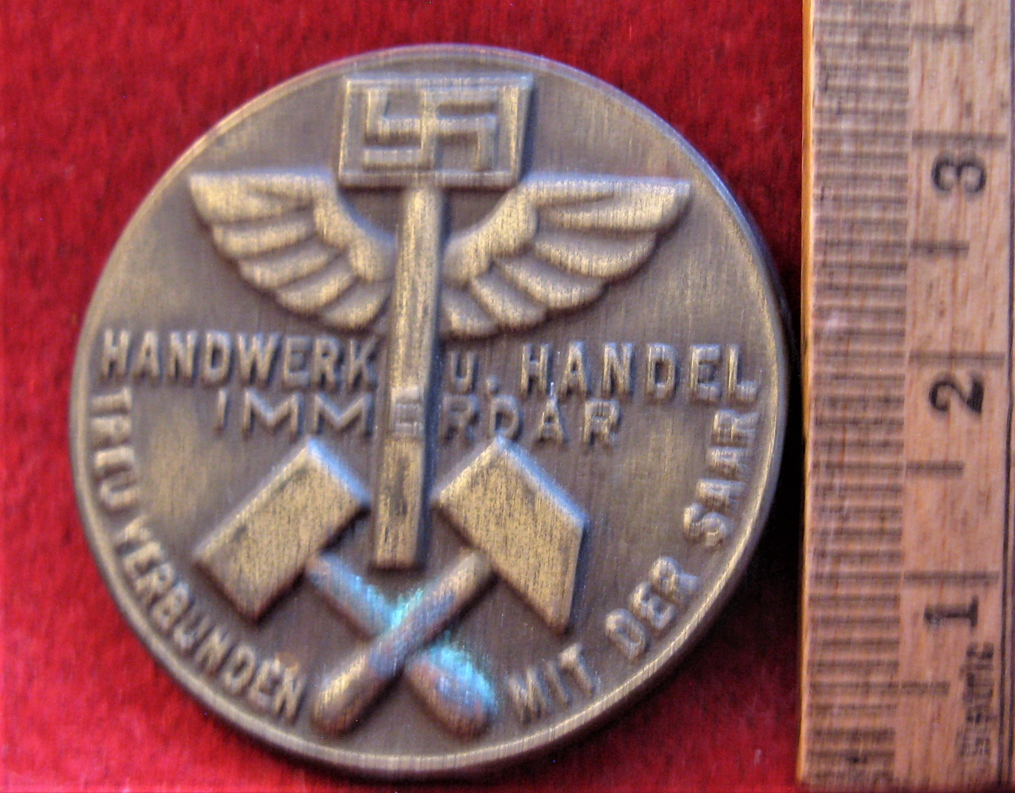 You are viewing a German pre WW2 "Tinnie" undated commemorating the Saar workers. This round, nicely stamped badge, is made of brass (unusual for "Tinnie" style badges). Safety pin style backing is original and intact.