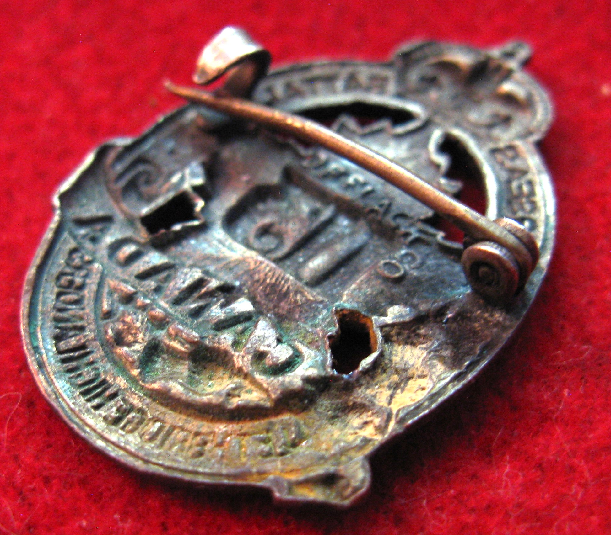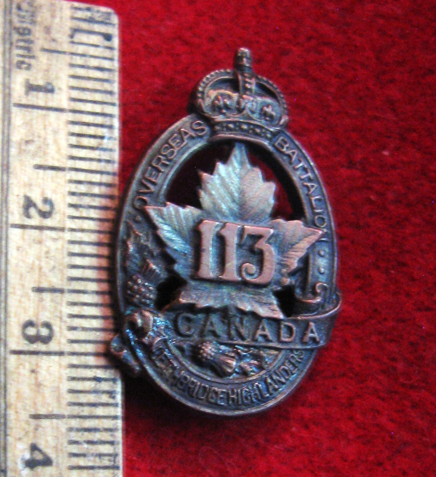 You are viewing a vintage CEF WWI era113th Battalion officer grade collar Badge.The 113th Battalion, was also known as the "Lethbridge Highlanders". The straight pin type attachment is original and in good order. That type of broach style attachment may aslo suggest that this badge could be a "Sweetheart". A very hard to find badge from the CEF era of the beginning of the 20th century. This badge is made of fine highly detailed copper using the stamping method...