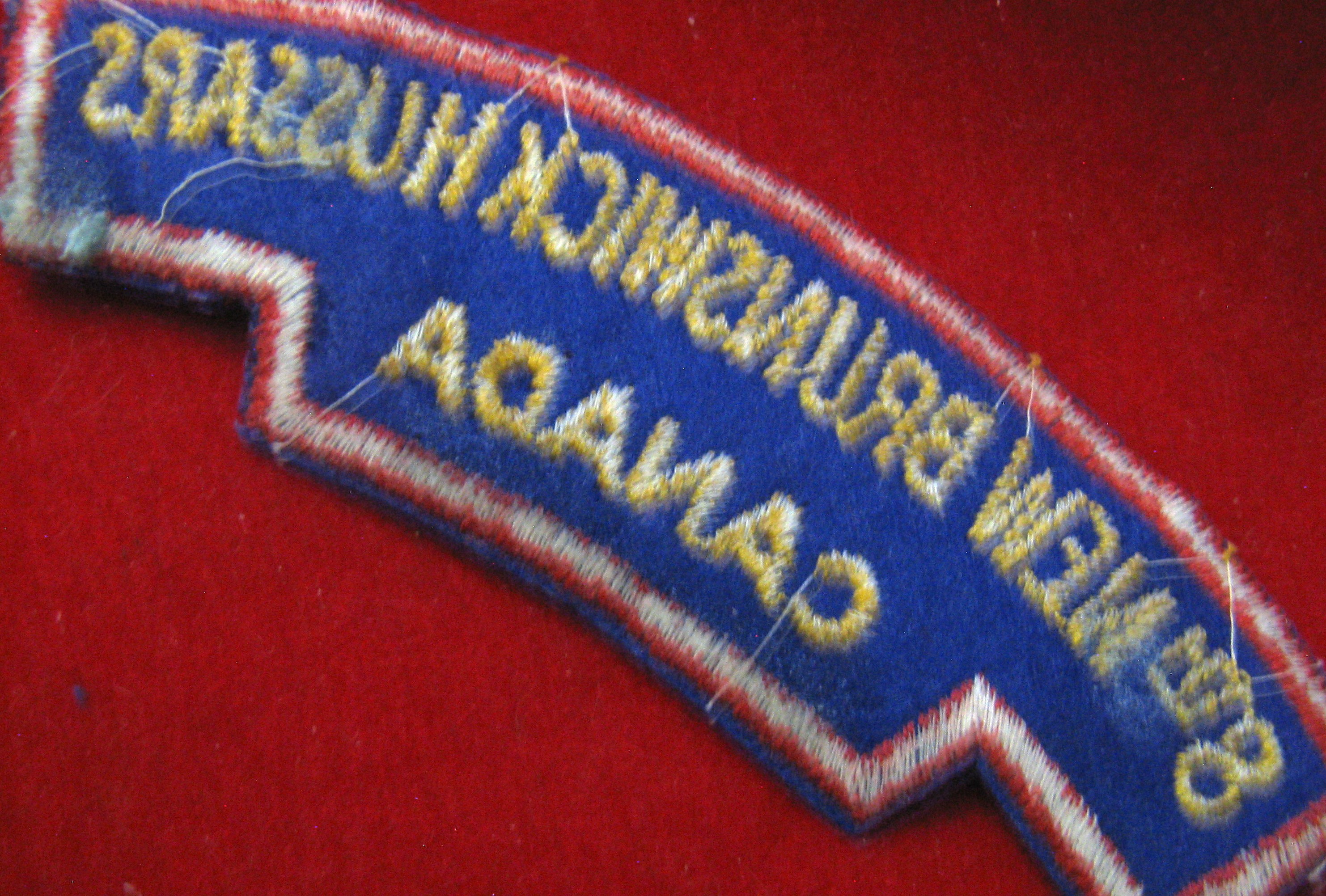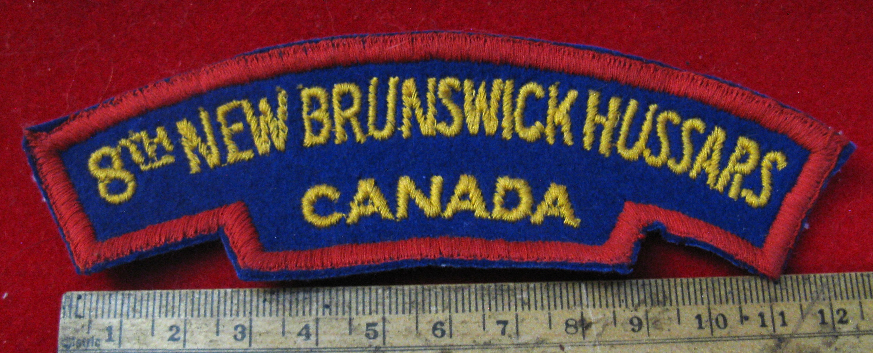 You are viewing a WWII era 3 piece grouping for the 8th New Brunswick Hussars. In excellent condition with its original "lug" type fasteners complete and intact. Also includes an original period shoulder flash. Comes from a WWII veteran I once knew.