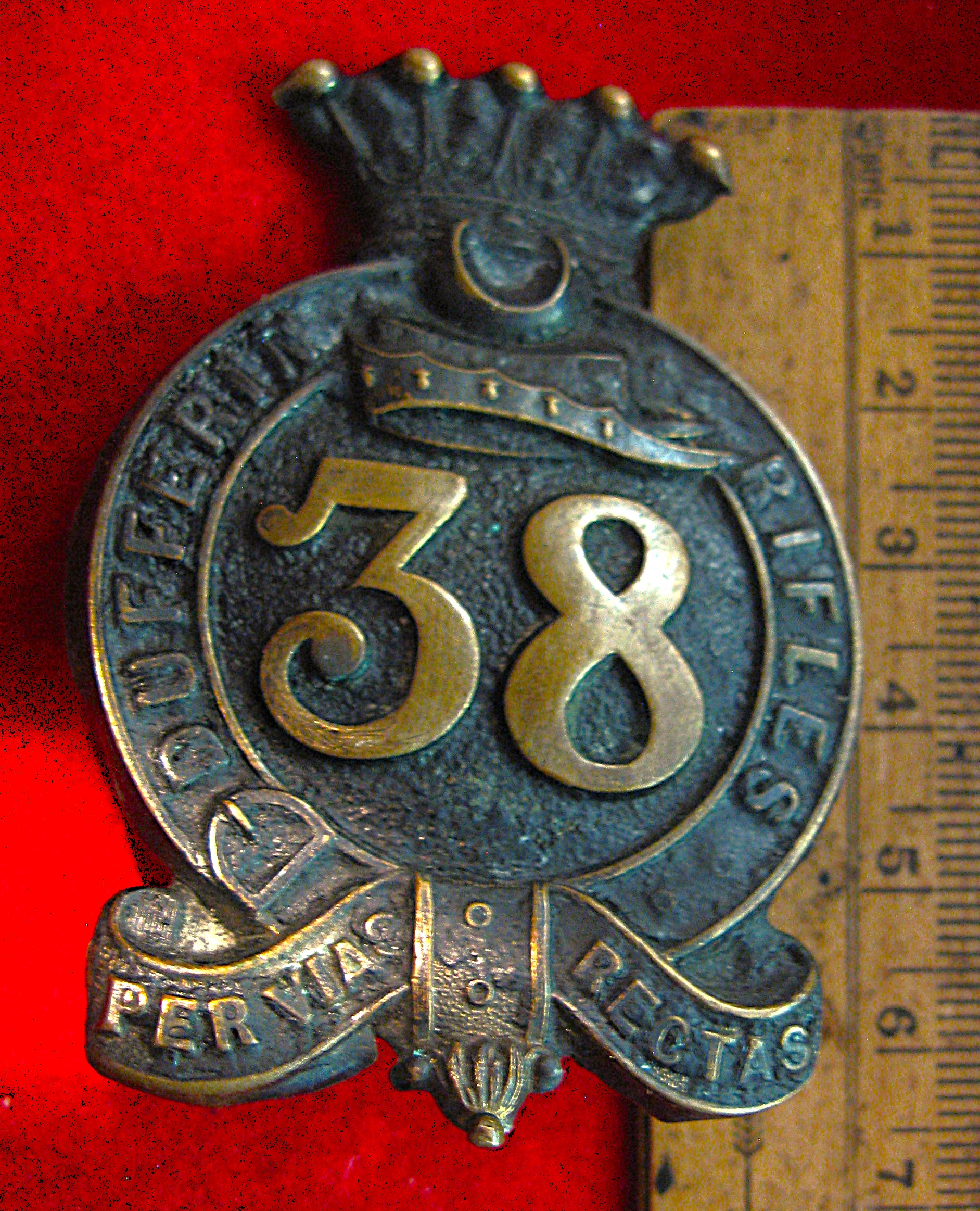 The Dufferin Rifles of Canada originated in Brantford, Ontario on 28 September 1866 when the '38th "Brant Battalion of Infantry"' was authorized to be formed. It was redesignated: '38th "Brant" Battalion of Infantry' on 30 November 1866; then it became the '38th "Brant" Battalion of Rifles' on 24 March 1871; then the '38th "Brant" Battalion or "Dufferin Rifles"' on 3 July 1874; After this it was called the '38th Battalion "Dufferin Rifles of Canada"' on 28 September 1883. (All of these name changes had a significance in the history of the Regiment...1866 was the Fenian raid period. 1883 was the Riel Rebellion, etc.) Study the unsung, proud history of the Canadian Army!