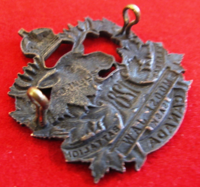 Above are the scans for a WWI 128th Batallion cap badge. Formed in 1915. This battalion was raised in Saskatchewan, with headquarters in Moose Jaw. Sailed for England in August of1916,and was reorganized into the15th and 19th reserve Battalions. This beautiful example is complete with both lugs. A browning copper o/r badge with very nice patina giving evidence to its age. Maker marked H.J. Inglis. A beauty for any collector of Canadian CEF badges.