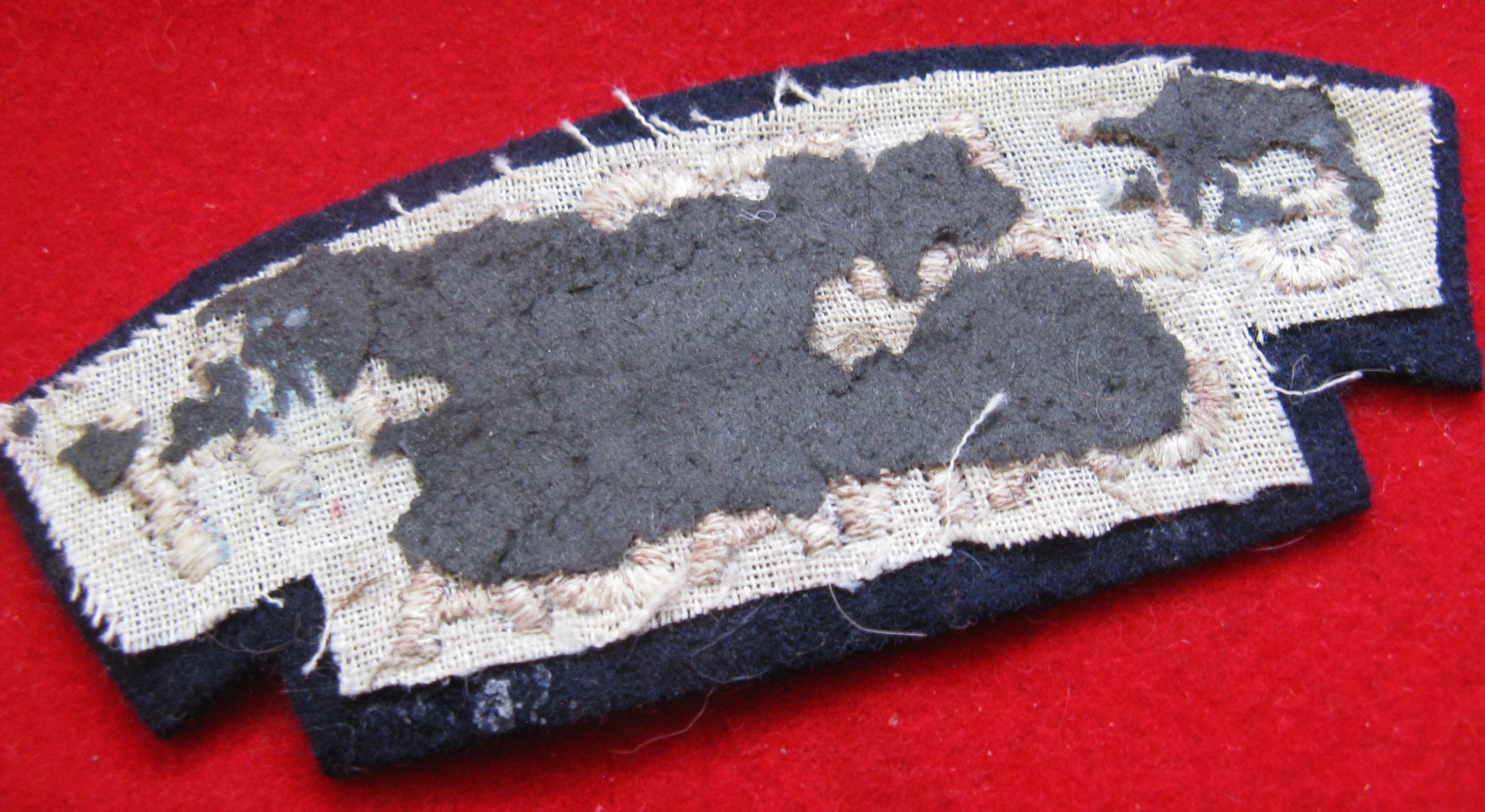 Above, you can view the scans of this 3 peice grouping of WW2 era Seaforth Highlanders Cap badge Shoulder Flash & Button-holer. The badge is a white-metal construction, with both lugs intact. The button-holer pin is plated metal with some red enameling on the crown and scrolling. The shoulder flash is an exquisitly preserved WWII era felt patch with cheesecloth backing, From a collection with some glue residue, but displays beautifully.