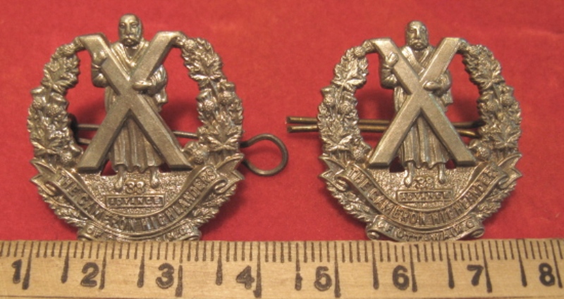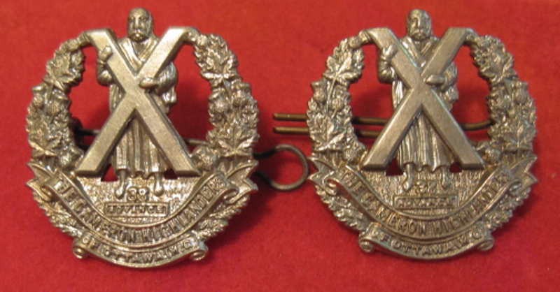You are viewing a WWII version of a Cameron Highlanders of Ottawa collar badge set. Complete with all original lugs and cross pin. Very good condition and an