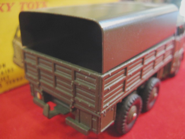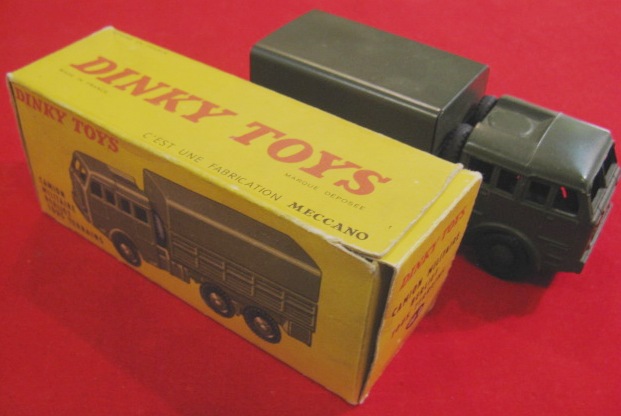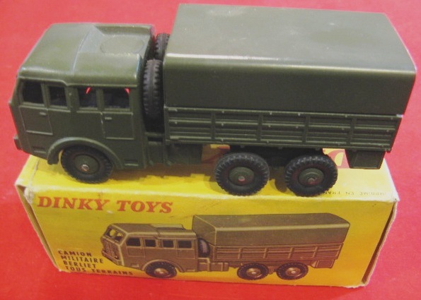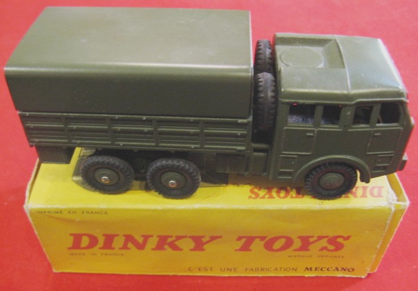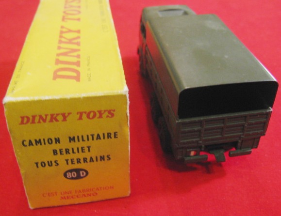 are viewing a 1950's Vintage French Dinky Berliet All Terrain Transporter #80D in its original packaging. The box has some minorcreases and some edge wear, and a slight 2 cm tareon one of the tabs,but appart from that the toy is excellent in every way. All parts are perfect and intact, paint is excellent. Guaranteed 100% genuine. Please keep in mind that on all our products we accept prepaid authorized returns within 14 days of shipping, for full product credit, if you are not satisfied. We can accept Paypal. Notethat you must assume responsibility for loss in shipping if you decline the insurance. I can combine items for multiple buyer. Call for personalized credit card service to 1-403-262-2397 during regular business hours (we are Mountain time) or send an email to creidm@gmail.com .