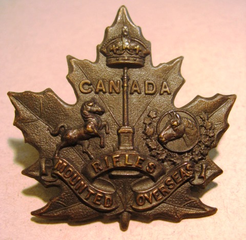 ![]() WWI CEF Canadian Mounted Rifle Draft Overseas Cap Badge
