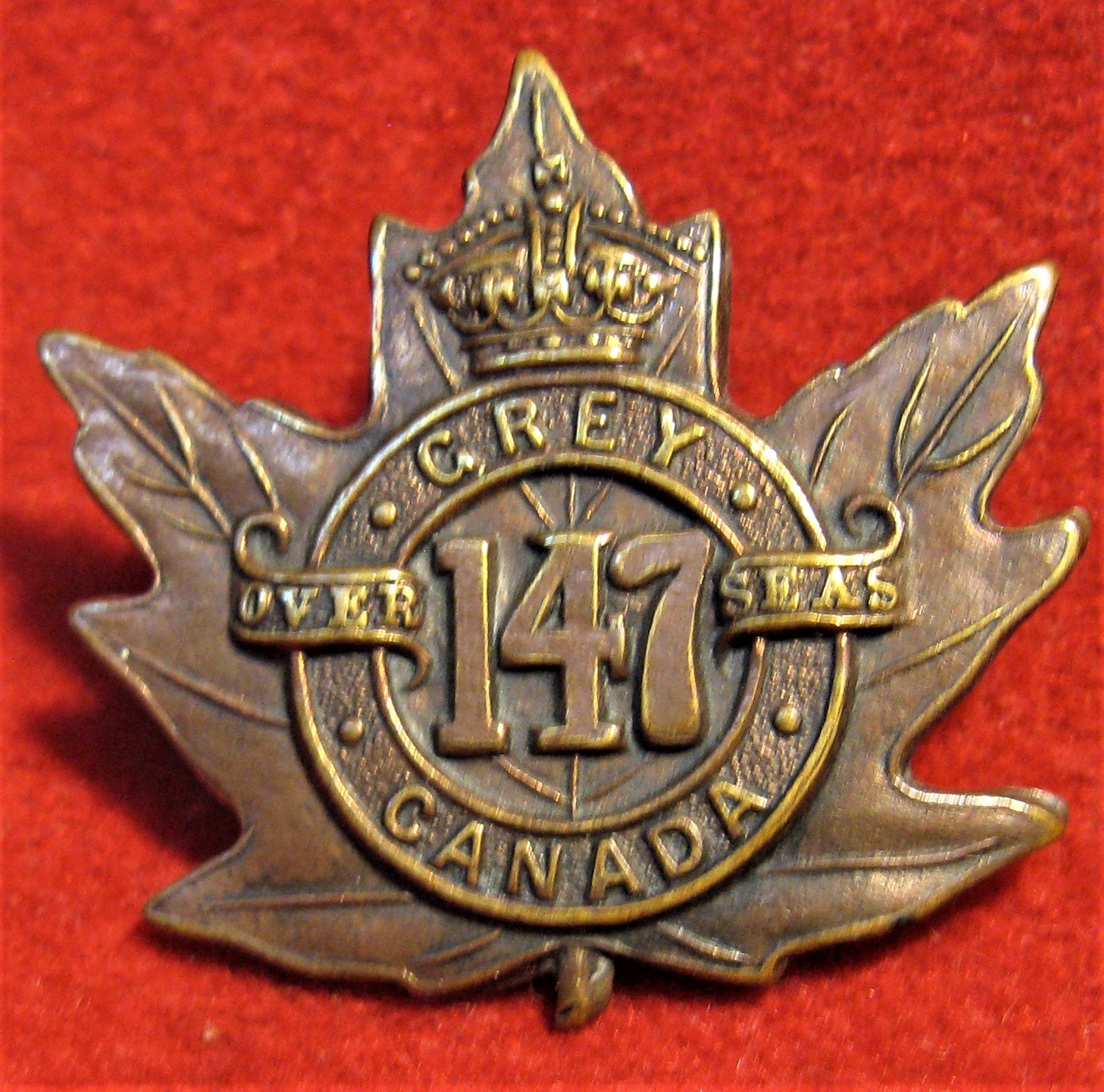 ![]() WWI 147th CEF Battalion Collar Badge