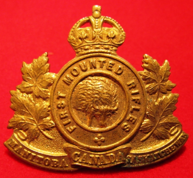 ![]() CEF era 1st Mounted Rifle Battalion Cap Badge