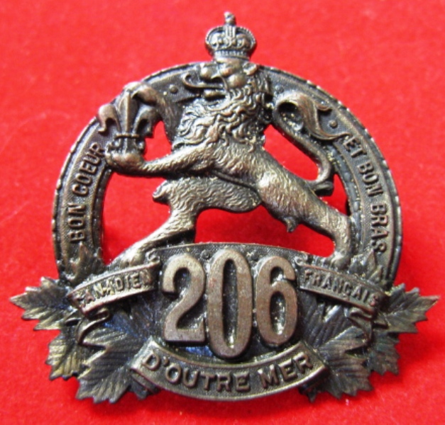 ![]() CEF WWI 206th (Canadien francais) Battalion Cap badge (lot #2)