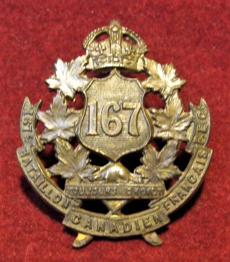 $29.00 | ![]() WWI 167th CEF Battalion Cap Badge