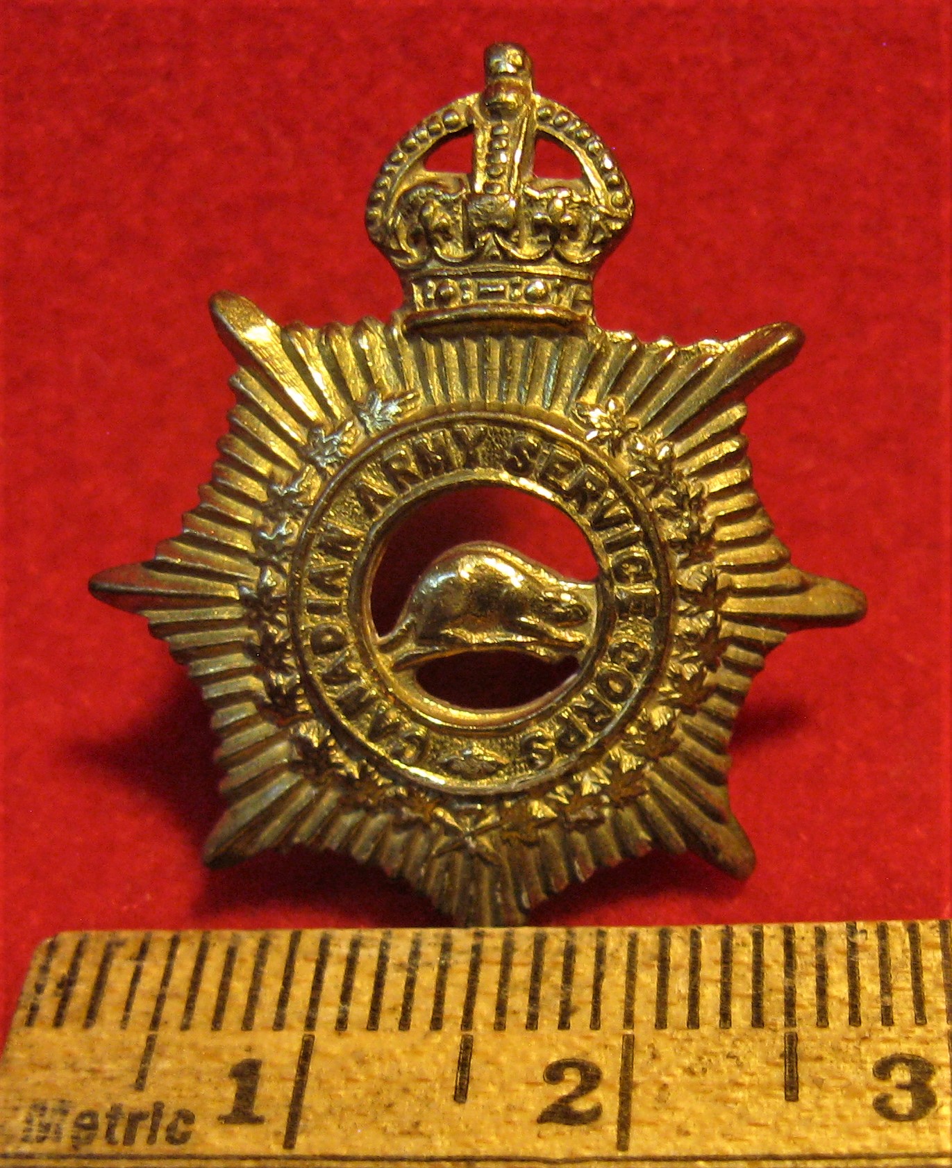 This battalion was raised from the Royal Montreal Regiment, with headquarters in Valcartier Quebec. $90.00 | ![]() CEF Canadian Army Service Corps Collar Badge WWI
