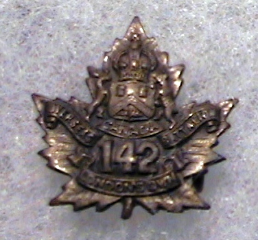 flat style lugs original & intact $159.00 | ![]() 142nd CEF Battalion Cap Badge (London Ontario) - Lot #3