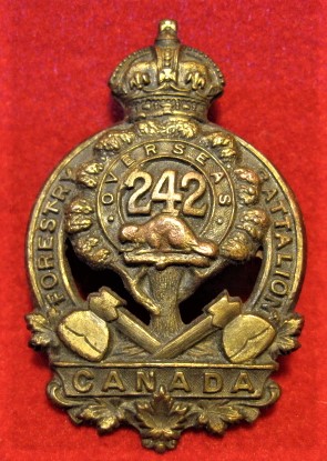 A clean "browning" brass o/r badge with very nice patina giving evidence to its age $35.00 | ![]() CEF 242nd Battalion Cap badge WWI