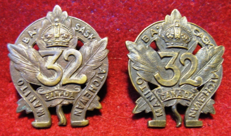 maker marked "Tiptaft and Sons, Birmingham". $125.00 | ![]() CEF 32nd Batallion collar badge
