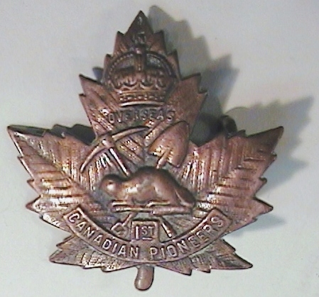 has the older "flat style" lugs $79.00 | ![]() CEF WWI era 1st Canadian Pioneers Collar badge