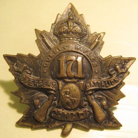 This fine clean example still has both original lugs. $22.00 | ![]() CEF WWI 171 Battalion Cap badge (Quebec Rifles)