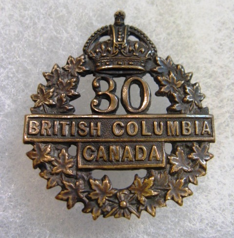 ![]() WWI CEF 30th batallion cap badge