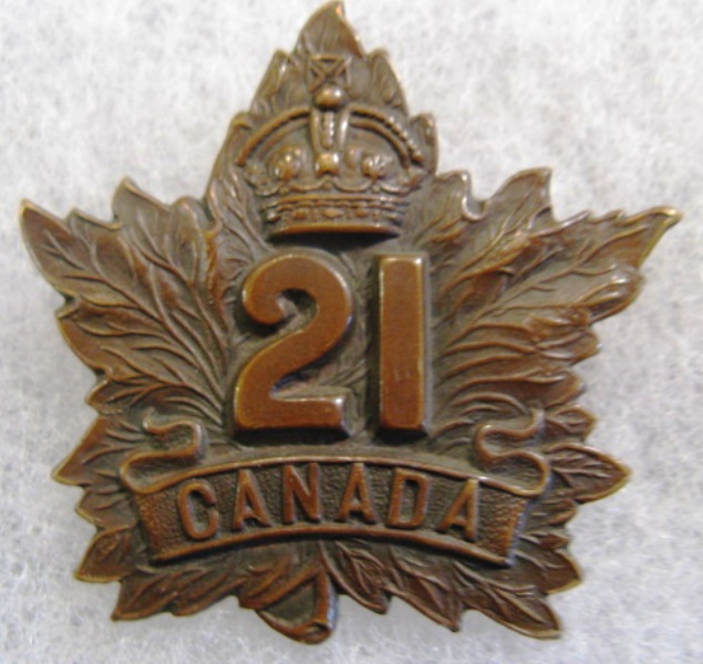 ![]() CEF 21st Battalion Cap Badge WWI (Lot #1)