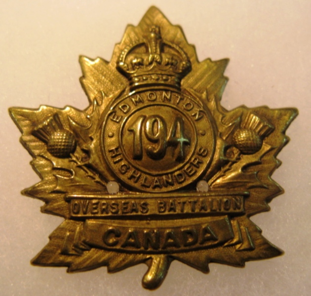 ![]() CEF 194th Battalion WWI Cap Badge