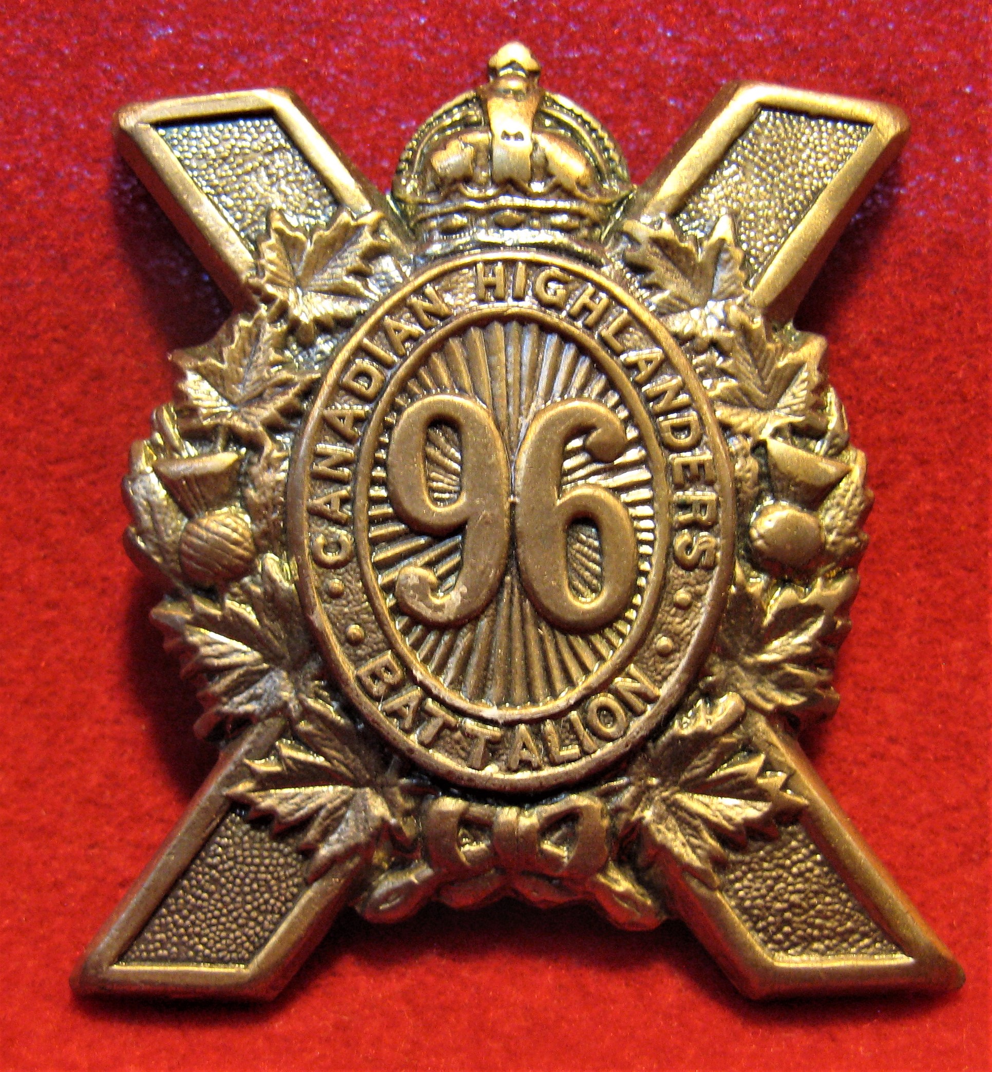 $39.00 | ![]() CEF 96th Battalion WWI Cap badge (Canadian Highlanders)