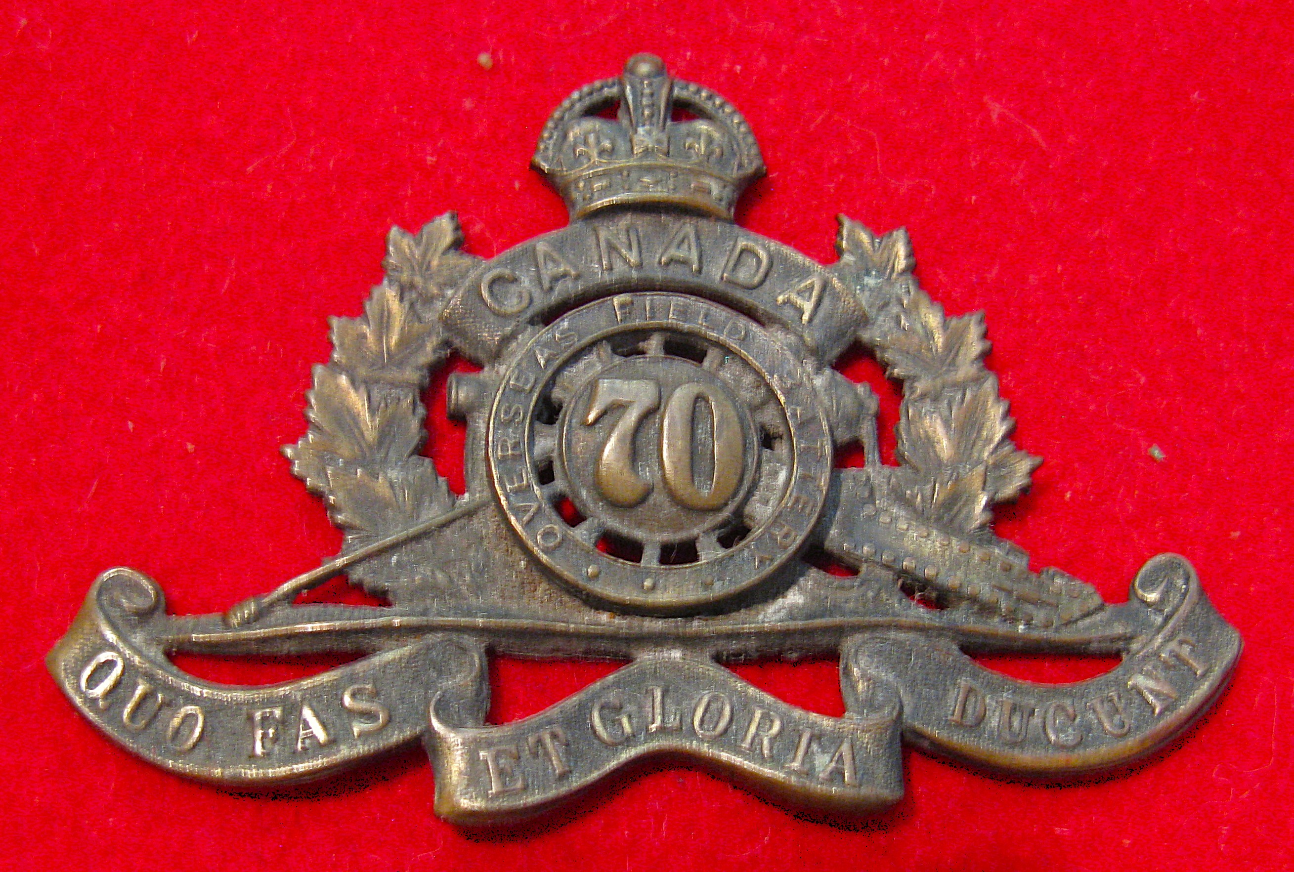 $39.00 | ![]() WWI CEF era 70th Overseas Field Battery Cap badge