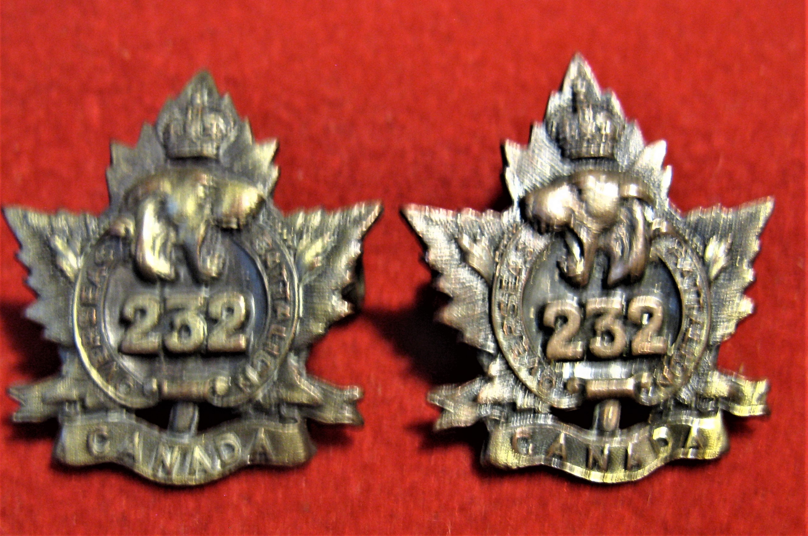 ![]() CEF WWI 232nd battalion Collar Badge set (2)