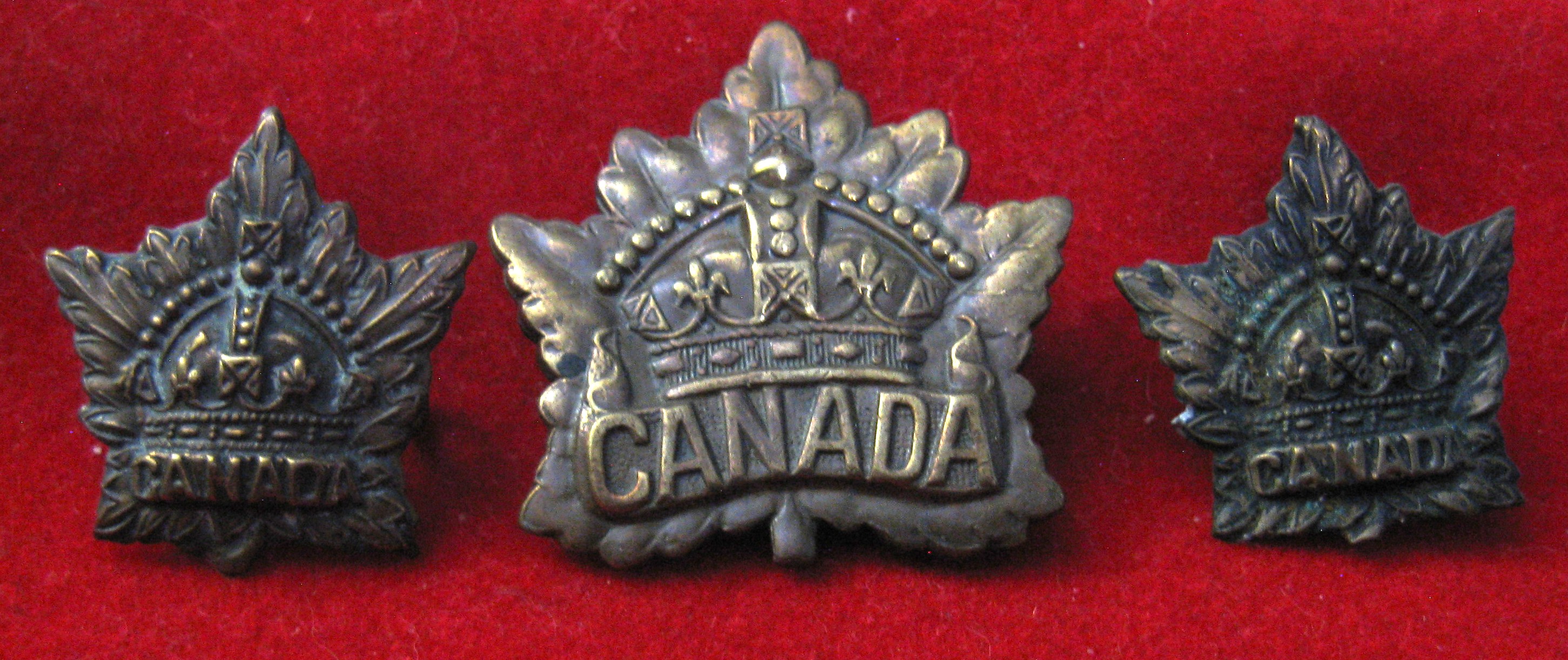>In this catagory we are showing some interesting CEF Canadian Cap and Collar badge sets (usually 3 pieces) from WW1. You may purchase any or all of the items shown, but keep in mind that I do not update the wedsite every day, so sometimes, albeit rarely, items are still listed which actually have been sold. It is our paramount purpose to present a smooth and pleasent buying experience for our customers. If you have concerns, do not hesitate to contact us, since we are here to serve you. Forcredit cardpayment over the phone: 1-403-262-2397 (1:00pm to 6:00pm Monday through Saturday - mountain time!) or by email atcreidm@gmail.com.We will also accept Paypal; click the link at the bottom of the item's scans.Notethat you must assume responsibility for loss in shipping if you declineour tracking / insurance offer.