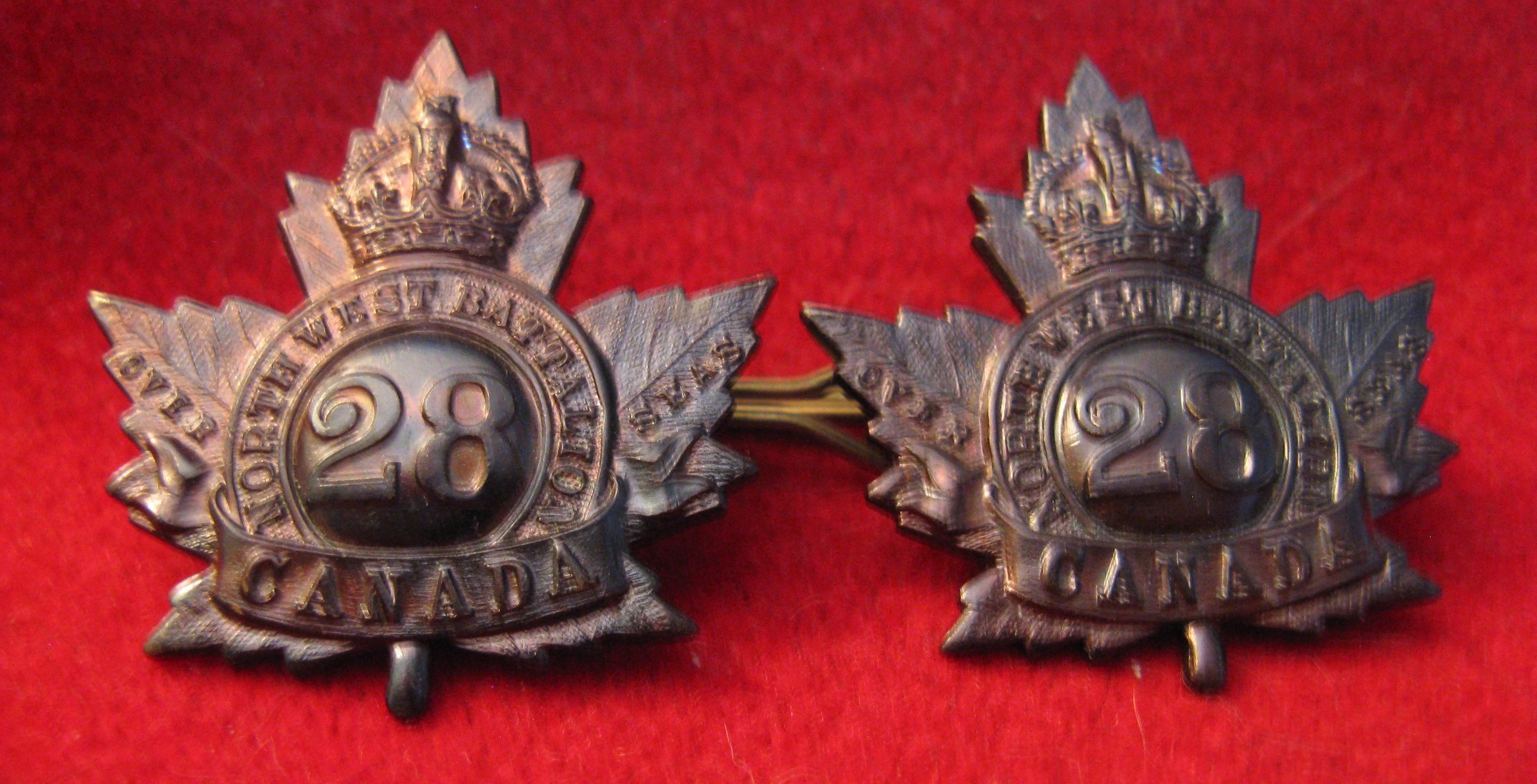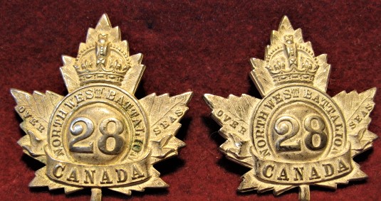 $259.00 | ![]() WWI CEF 28th Battalion Silver Collar badge set (2)