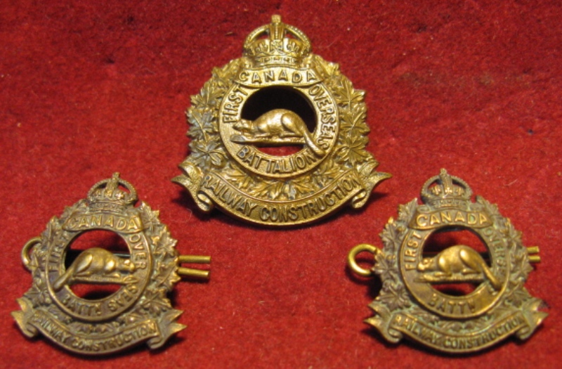 ![]() WWI CEF10th Canadian Railway Troops Cap Badge & collar set (3)