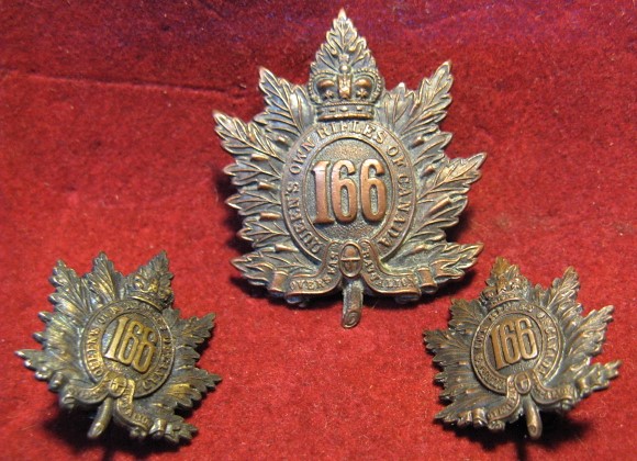 ![]() WWI CEF 166th Battalion Cap & Collar set (3)