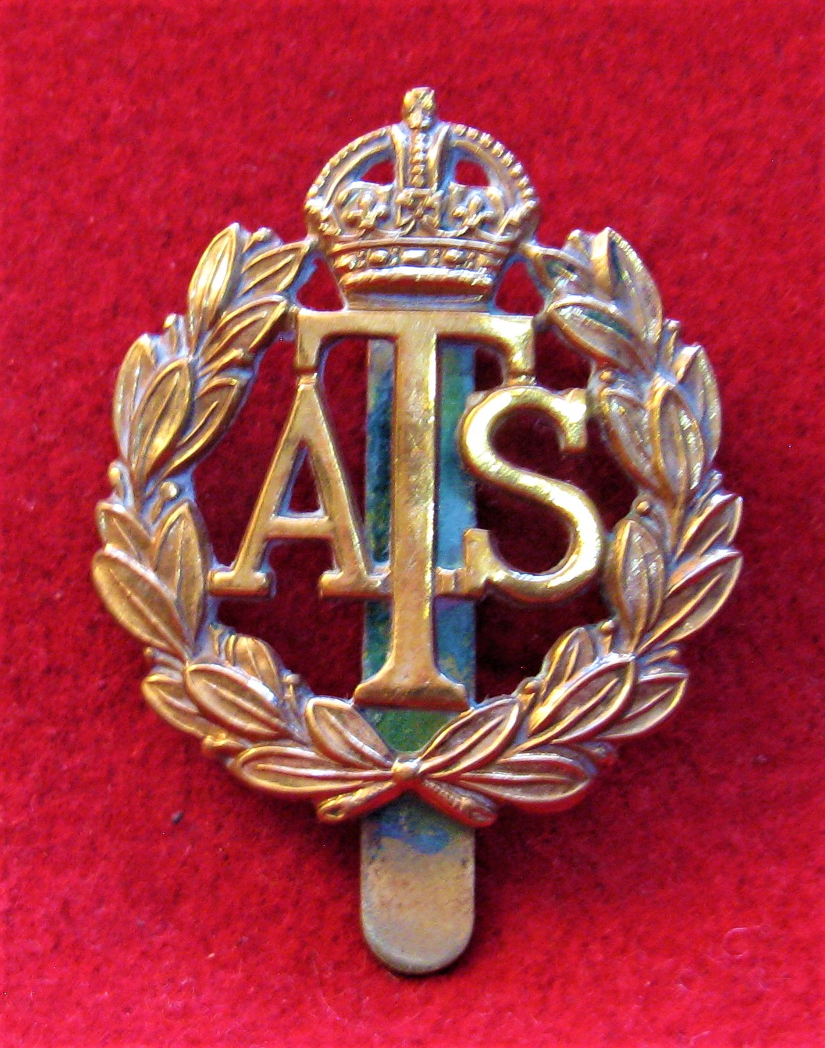 Very clean, brass bi-metal badge $10.00 | ![]() ATS Cap badge WW2 era