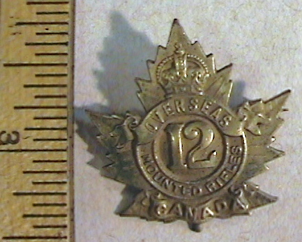 You are viewing a vintage 12th CEF Mounted Rifles WWI Collar device. In good order, excellent overall condition on clean brass.Has a pin back attachment in good condition. This may mean that it is an Officer grade collar or a "sweetheart badge".