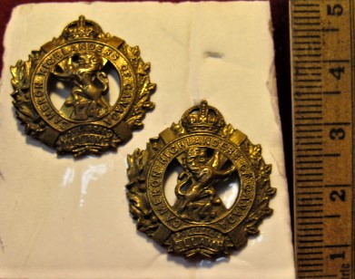 You are viewing the scans for this CEF 174th Battalion collar badge set of two; "Canadian Highlanders". This beautiful badge set is made of heavy brass is complete with all lugs, original and in good order. A clean brass o/r cap badge set with very nice patina giving evidence to its age. A beauty for any collector of Canadian CEF badges.