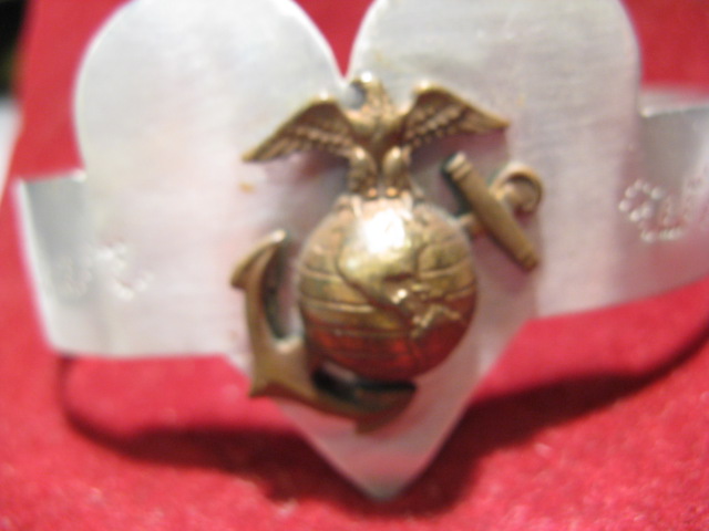 You are viewing an early USMC collar badge (May be WW1 era) type. Note the anchor is NOT fouled. This copper badge was affixed to a sweetheart bracelet at one time and we are showing it in its "as found" condition. Nice patina on this one.