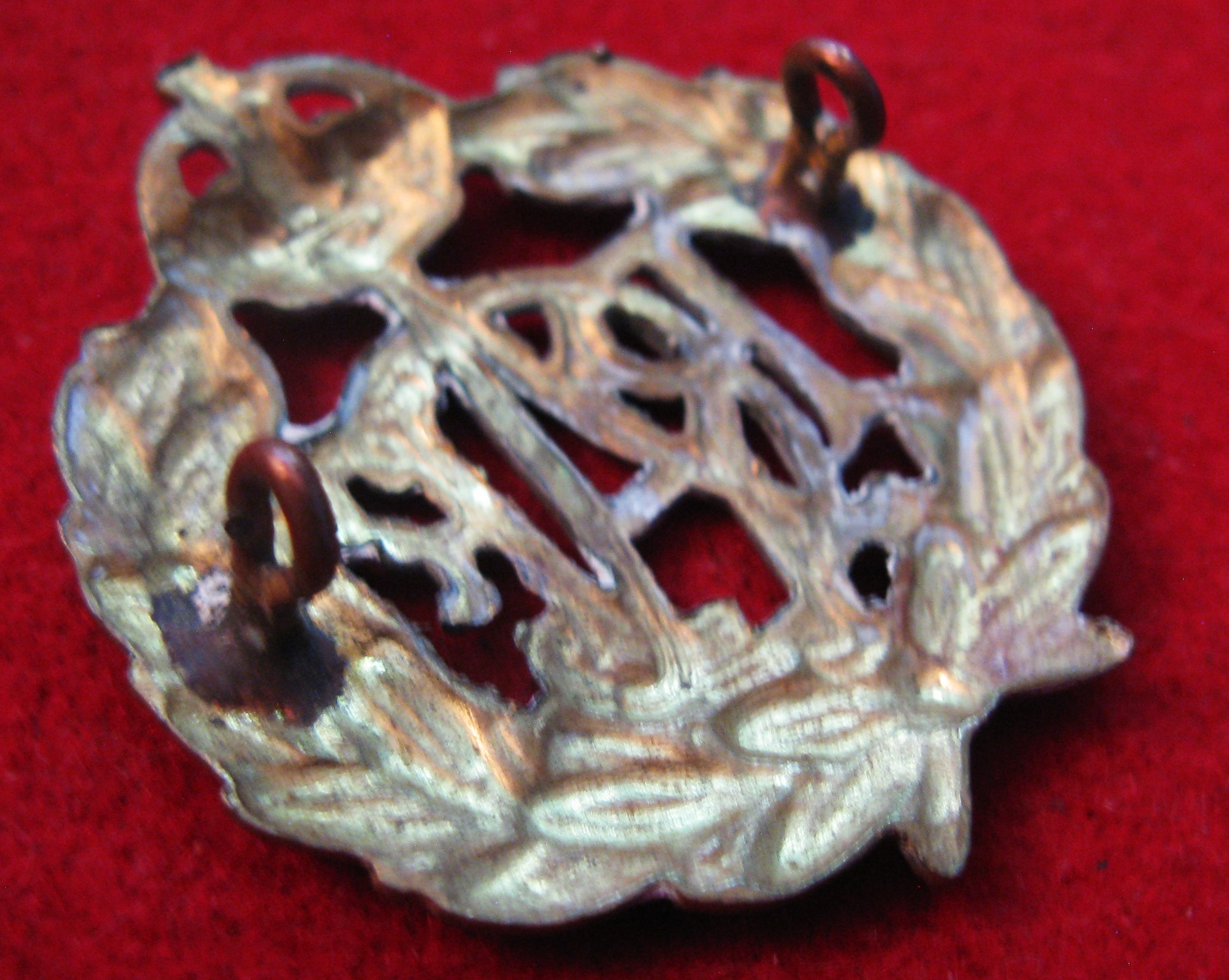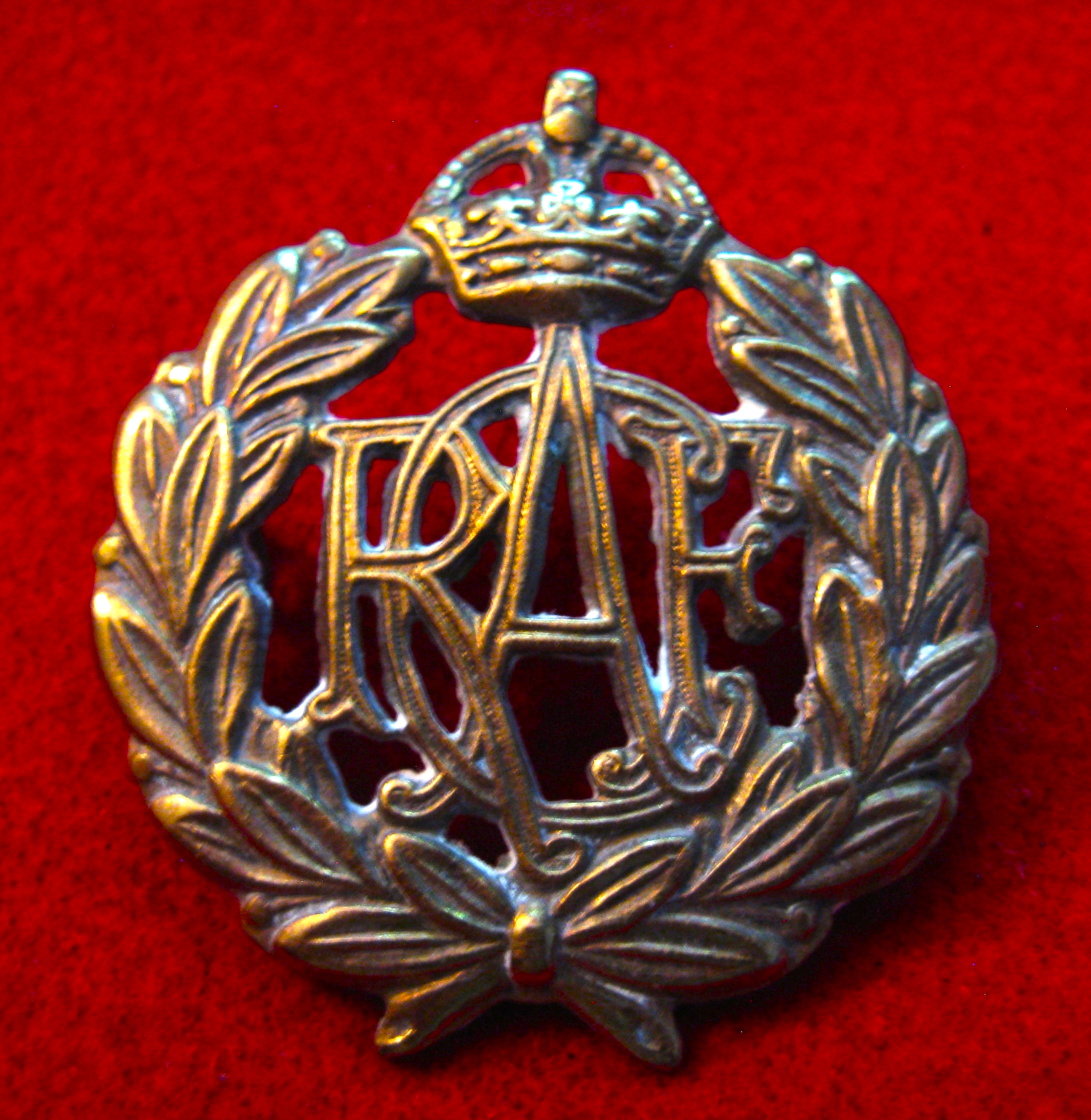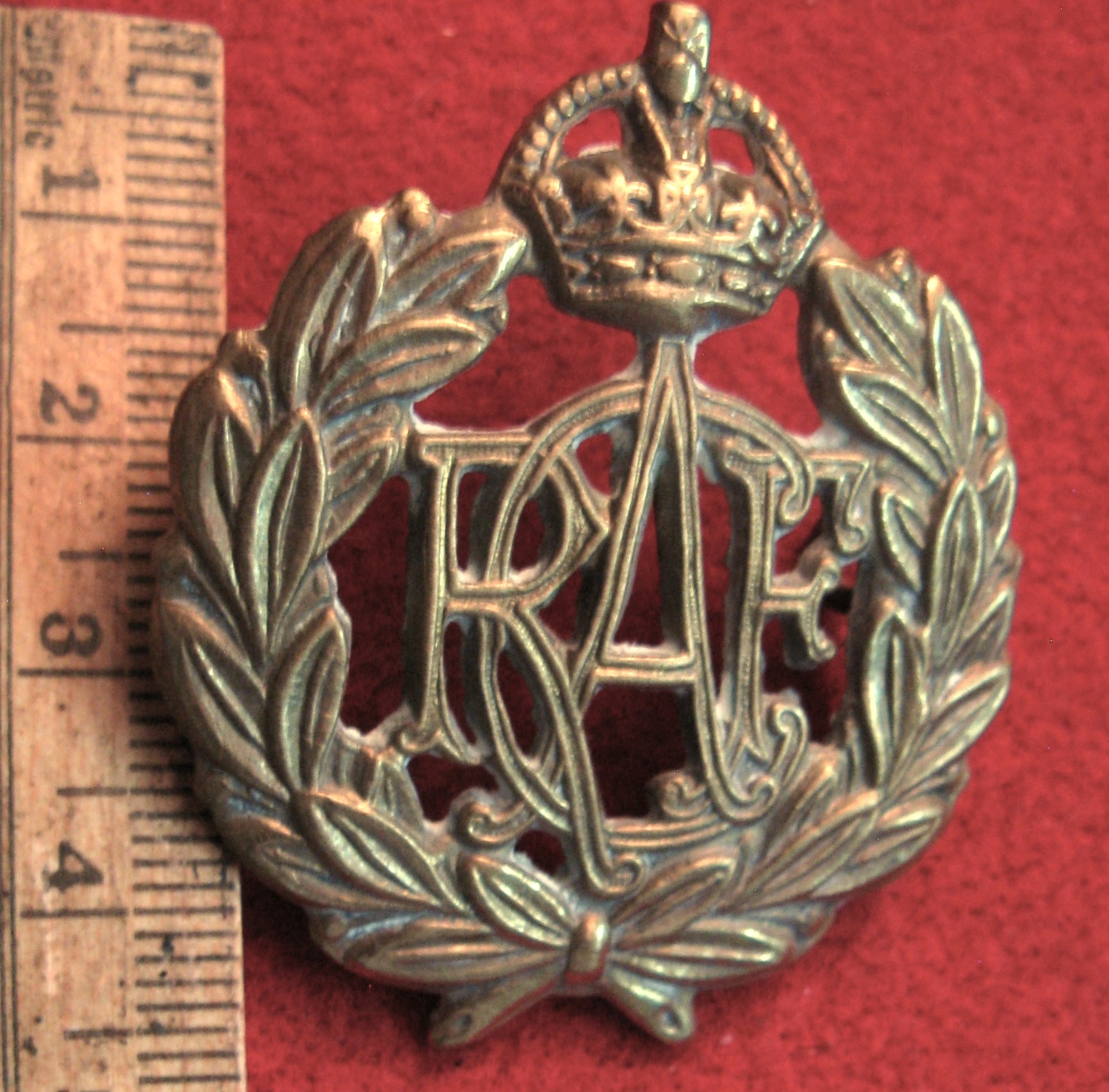 This badge was typically worn on the blue wedge cap of the RCAF. Made of brass and was slightly "broomed" for comfort, by its previous owner. We often find this type of