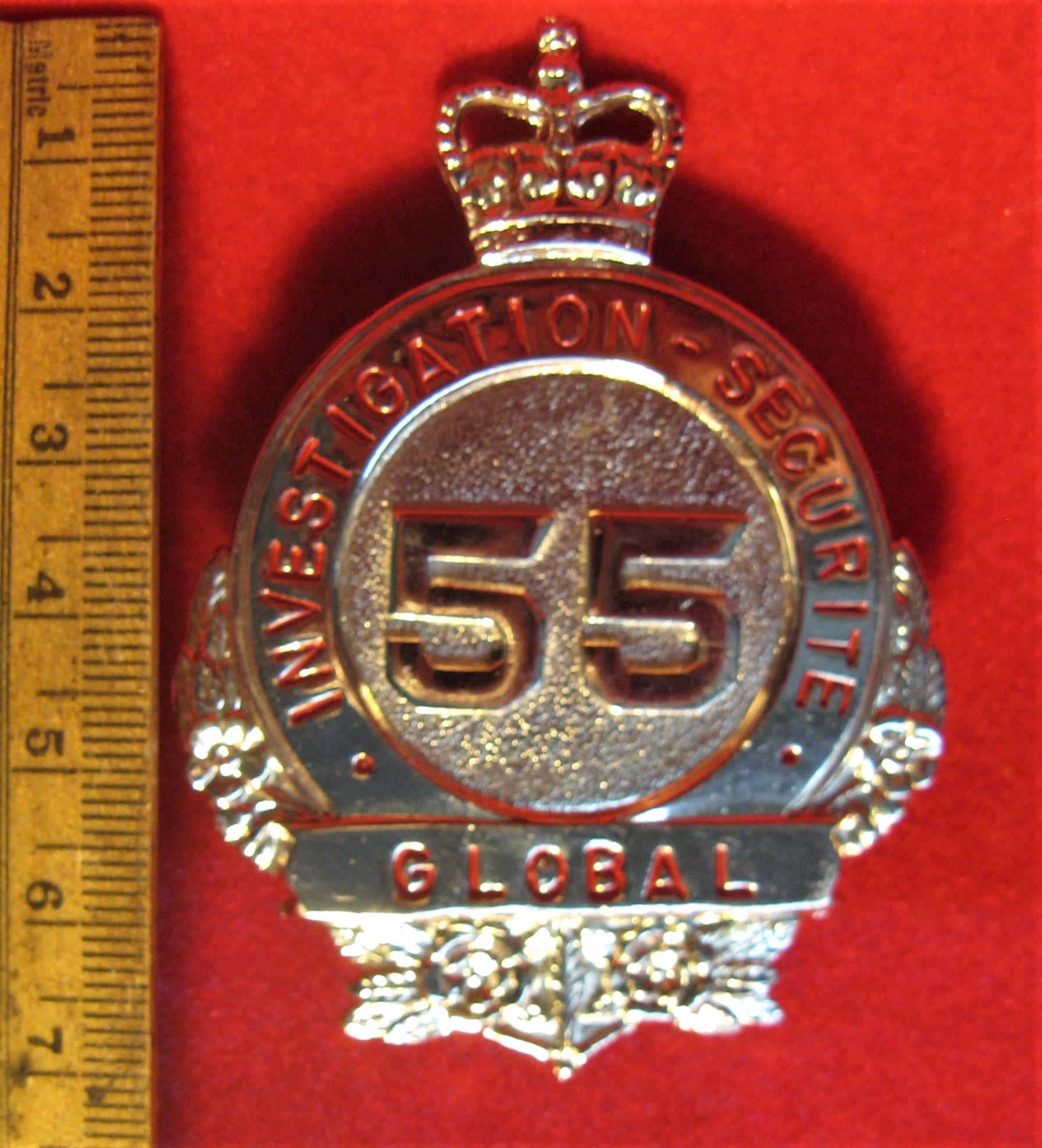 You are viewing a QC era Global Investigation Service Badge with the number 55. A beautiful plated badge with enamelled lettering. Original screw type attachments arein good order.
