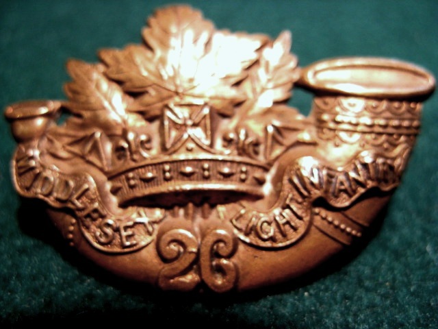 You are viewing a rare collar-dog from the 26th Middlesex Canadian Militia. This badge is in very good condition and still has both lugs intact. Not sure of origen but the badge has distinctive Canadian maple leaves.This very clean copper badge is excellent.