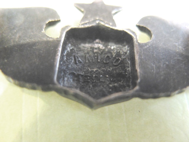You are viewing a WW2 Vintage USAAFSenior Pilot's Wings. This badge is the smaller format.Maker marked Amico, with both pin backs intact with design details nicely preserved on this sterling badge. (View scans for details).Please quote the number at the top of the item page when ordering to avoid confusion. Guaranteed Original! We accept PAYPAL our address is (creidm@gmail.com ) and we prefer VISA ot Mastercard over the phone. Calldaily noon to 5:00pm 403-262-2397. We ship worldwide usually by post. Insurance available on most items at extra cost. We will combine items for the multiple buyer to save on shipping costs. On all our products we accept prepaid authorized returns for full product credit, if you are not satisfied.